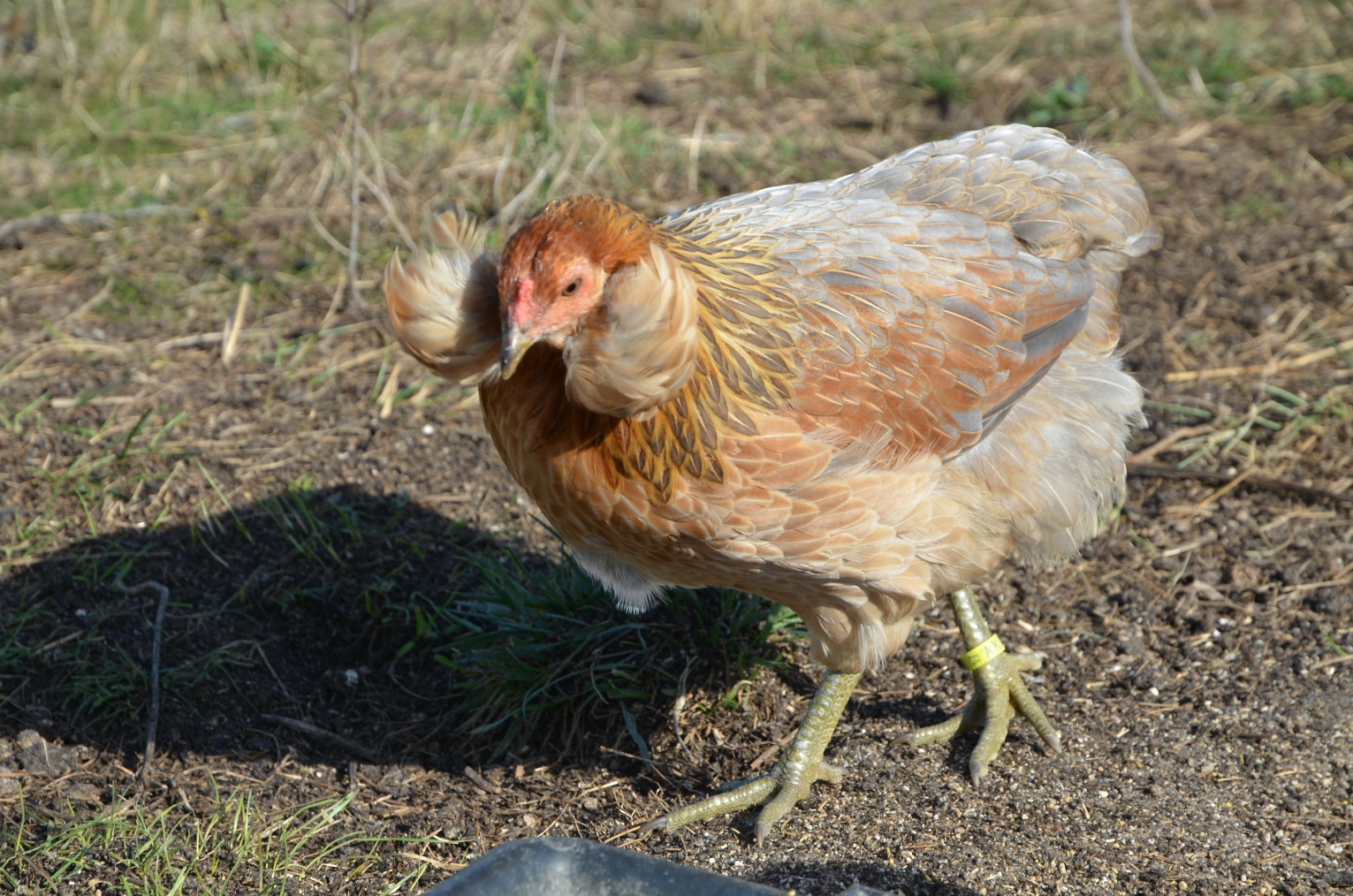 id+/ID (absence de mélanine) combiné avec w/w (peau jaune) : pattes jaunes