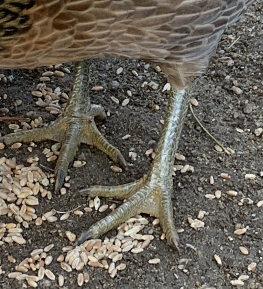 Il faut aussi savoir que certains gènes codent pour les couleurs des plumages interviennent également sur la couleur des tarses, comme le noir, le barré, le froment et le splash.