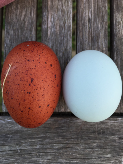 Des études montrent également que la coquille des œufs bleus ou verts est plus épaisse que celle des œufs non bleus et qu'elle montre moins de micro-fêlures.