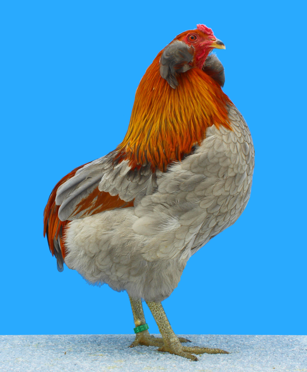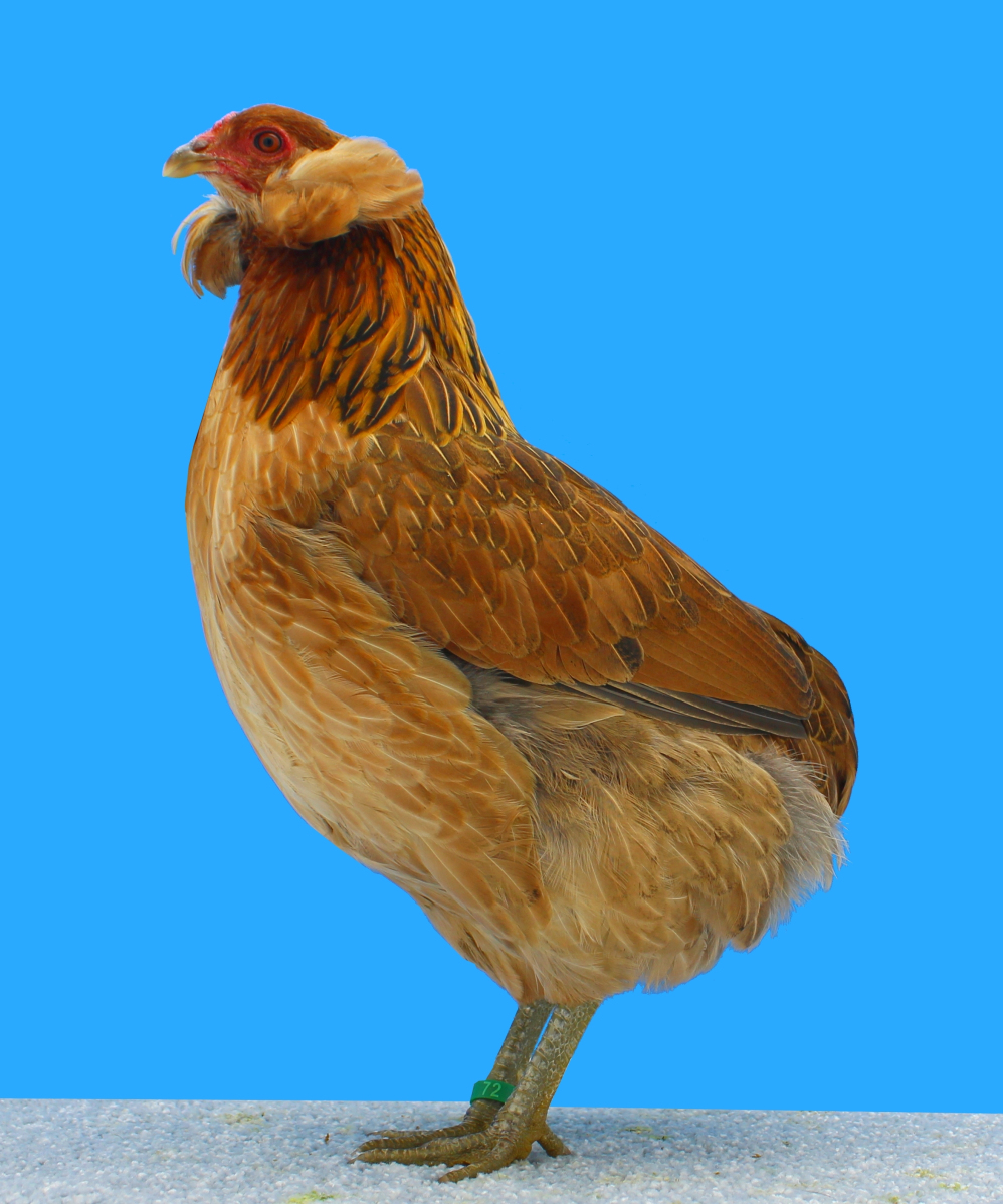 J'ai donc choisi la poule de la cage 5897 et le coq de la cage 5872 qui se trouvaient être les plus représentatifs de la race dans l'état actuel de la sélection. Parmi tous les sujets présentés, ils étaient incontestablement les meilleurs en type, en tête, et en excellent état de plumage (mue achevée), camail abondant et selle bien arrondie, avec une belle symétrie de leurs oreillards.