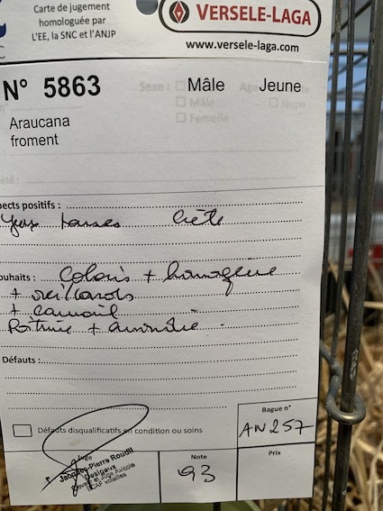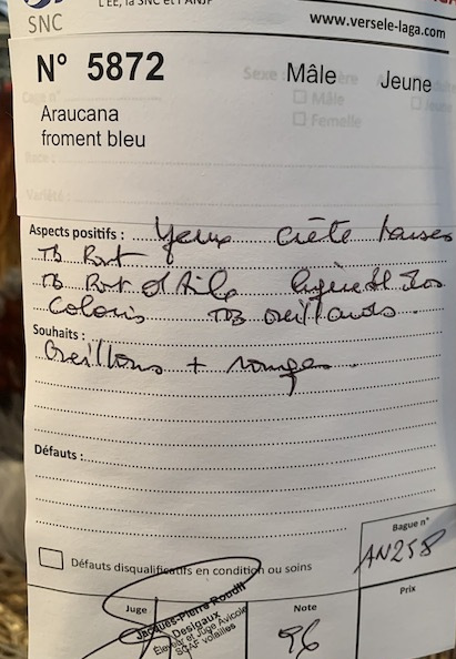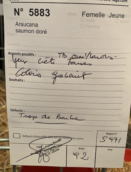 Pour conclure, j'ai été ravi de juger ce premier Championnat de France de l'Araucana même s'il a été complexe de désigner les meilleurs sujets.