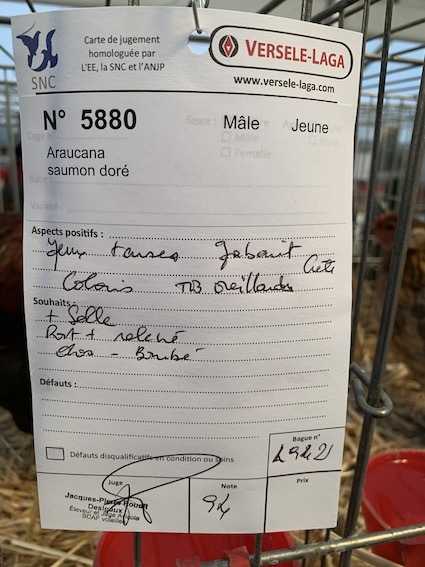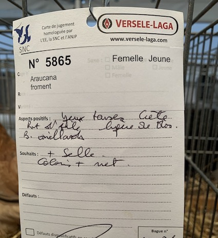 Pour conclure, j'ai été ravi de juger ce premier Championnat de France de l'Araucana même s'il a été complexe de désigner les meilleurs sujets.